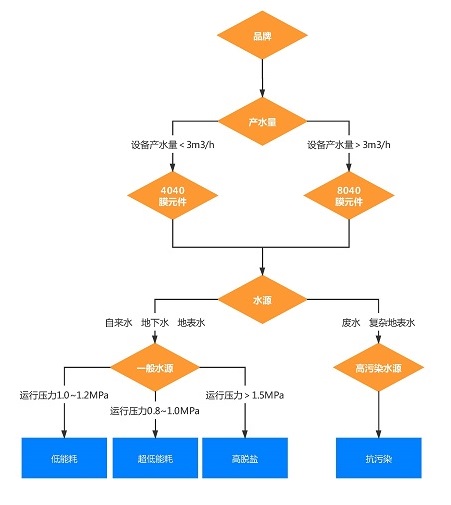 2)運行壓力1.0~1.2MPa的可選用低能耗反滲透膜元件;