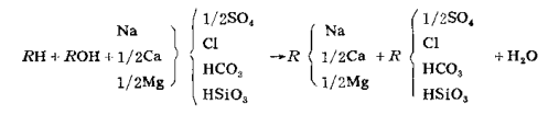 水中各種無機鹽類電離生成的陽、陰離子,經過氫型離子交換劑層時,水中的陽離子被氫離子所取代;經過氫氧型離子交換劑層時,水中的陰離子被氫氧離子所取代。進入水中的氫離子與氫氧離子組成水分子(H2O),從而取得去除水中無機鹽類的效果?;齑菜|除鹽的反應方程式如下: