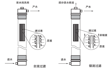 超濾系統可以按照全流或死端過濾、錯流過濾(Cross-flow)兩種運行模式操作。